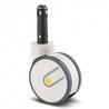 Поворотный ролик с центральным тормозом, кронштейн из прессованной стали, прецизионный шарикоподшипник в поворотном узле, корпус с синтетической крышкой, стержень с кулачковым отверстием для профильных прутков . Центр колеса из Полиамида, Протектор из инжектированного Полиуретана, с защитными колпаками, прецизионный шарикоподшипник, герметизированный