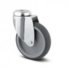 Поворотный ролик, кронштейн из прессованной стали, блестящее оцинкованное пассивированное голубым покрытие, двухрядный шарикоподшипник в поворотном узле, отверстие под болт. Центр колеса из Полипропилена, Протектор: ТЕНТЕпрен (термопластичная резина), серая не оставляющая следов, подшипник скольжения Ролики могут быть прикреплены стандартными винтами; можно использовать винты разной длины.