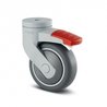 Поворотный ролик с колесным тормозом, кронштейн и колеса изготовлены из высококачественных синтетических материалов с интегрированными защитными колпаками, с посадочным отверстием для мебельных фитингов . Центр колеса из Полипропилена, Протектор: ТЕНТЕпрен (термопластичная резина), серая не оставляющая следов, прецизионный шарикоподшипник , с защитными колпакамиРолик отвечает всем требованиям EN 12530, за исключением поворотнго люфта.